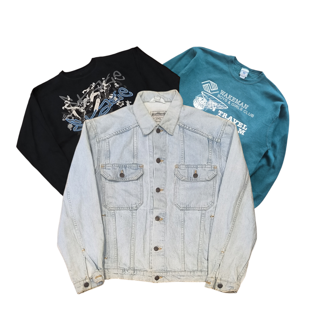 Nous sommes spécialisés dans les sweats, T-shirts, pulls,jackets et jeans vintage ou de marques pour professionnels, chaque pièce est triée par nos soins ce qui permet d'assurer une certaine qualité pour nos clients et un cout très bas.